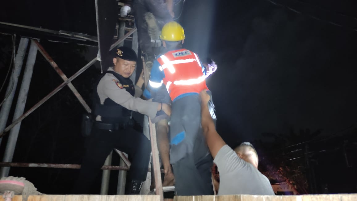 Tim Patroli Sat Samapta Polres Banggai bersama petugas PLN setempat langsung bergegas memberikan pertolongan serta mengevakuasi korban.
