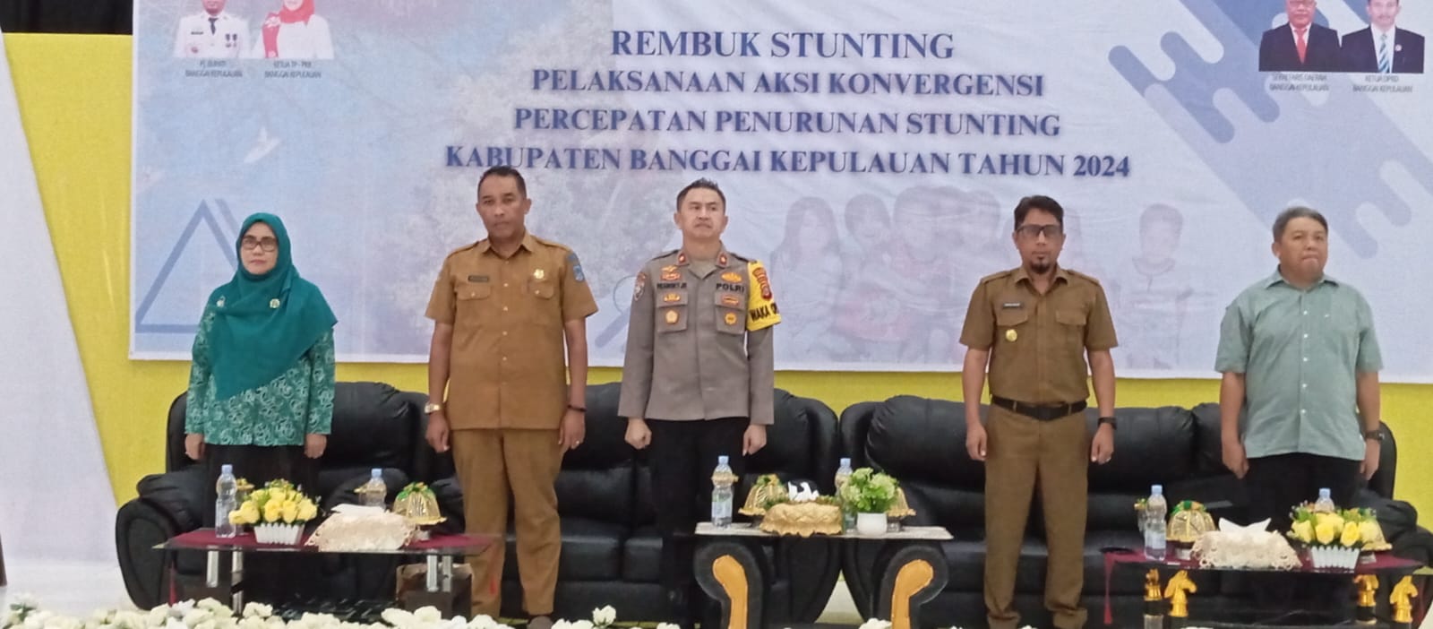 Pj. Bupati Banggai Kepulauan Ihsan Basir, SH. LLM , Tenaga Ahli Universitas Tadulako DR. Suparman, Kepala Dinas Pemberdayaan Perempuan dan KB Moh. Adnan Datu Adam, SE, Waka Polres Bangkep Kompol DR. Frengky Jefri Ray. SH,S,Pd,MH dan Staf Ahli Setda Banggai Kepuauan Halima Hamid, S. Sos, Kepala Kementeria Agama Kabupaten Bangkep,di Wakili oleh Drs. H. Ahmad Yani, Kepala Urusan Agama Kec. Tinangkung Sarpin Dayanun, S. Ag. M. Pd, serta  Kepala Bappeda Dr. Ariono Orab, SE dan para  Kepala Satuan Perangkat Daerah, Camat Se- Kabupaten Bangkep.