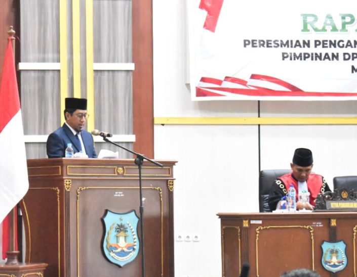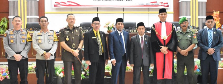 Banggaikece.id – Pejabat Bupati Banggai Kepulauan (Bangkep) H.Ihsan Basir SH.LLM menghadiri Rapat Paripurna Peresmian Pengangkatan Dan Pengucapan Sumpah/Janji Pimpinan Dewan Perwakilan Rakyat Ketua dan Wakil Ketua DPRD Kabupaten Banggai Kepulauan Masa Jabatan 2024 – 2029 yang bertempat di Ruang Sidang DPRD Banggai Kepulauan, Senin (28/10/2024).