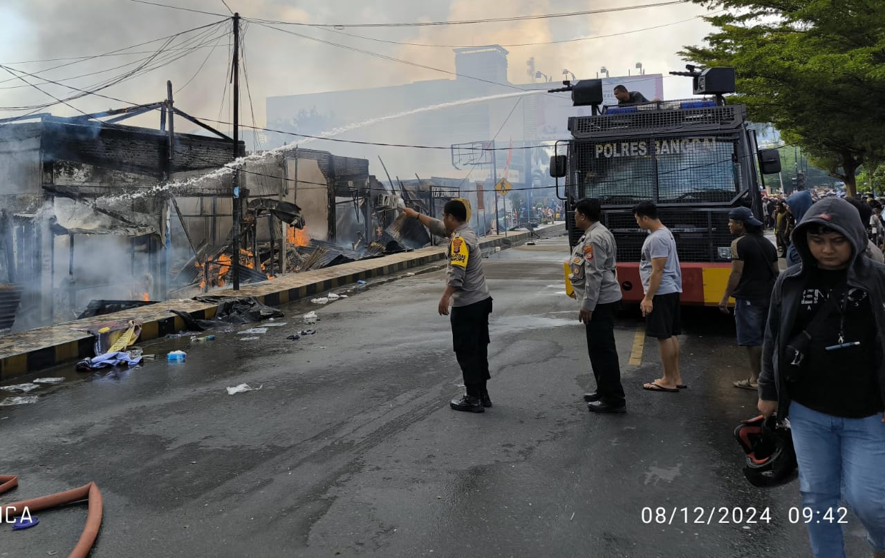 Kapolres mengatakan dikerahkannya Water Canon sebagai upaya membantu petugas Pemadam Kebakaran dan masyarakat dalam menanggulangi api yang terus membesar.