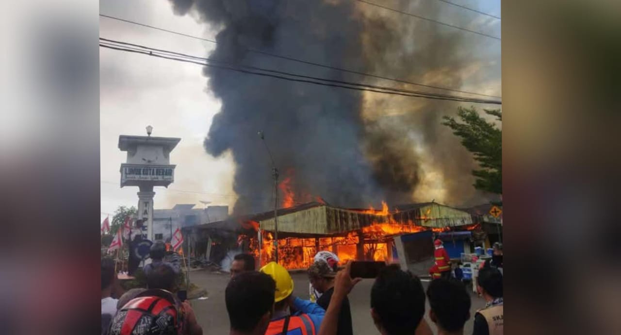 Ratusan lapak pedagang hangus terbakar dalam musibah yang mengejutkan warga sekitar tersebut. Kobaran api dengan cepat meluas, melahap sebagian besar bangunan di pasar tersebut.