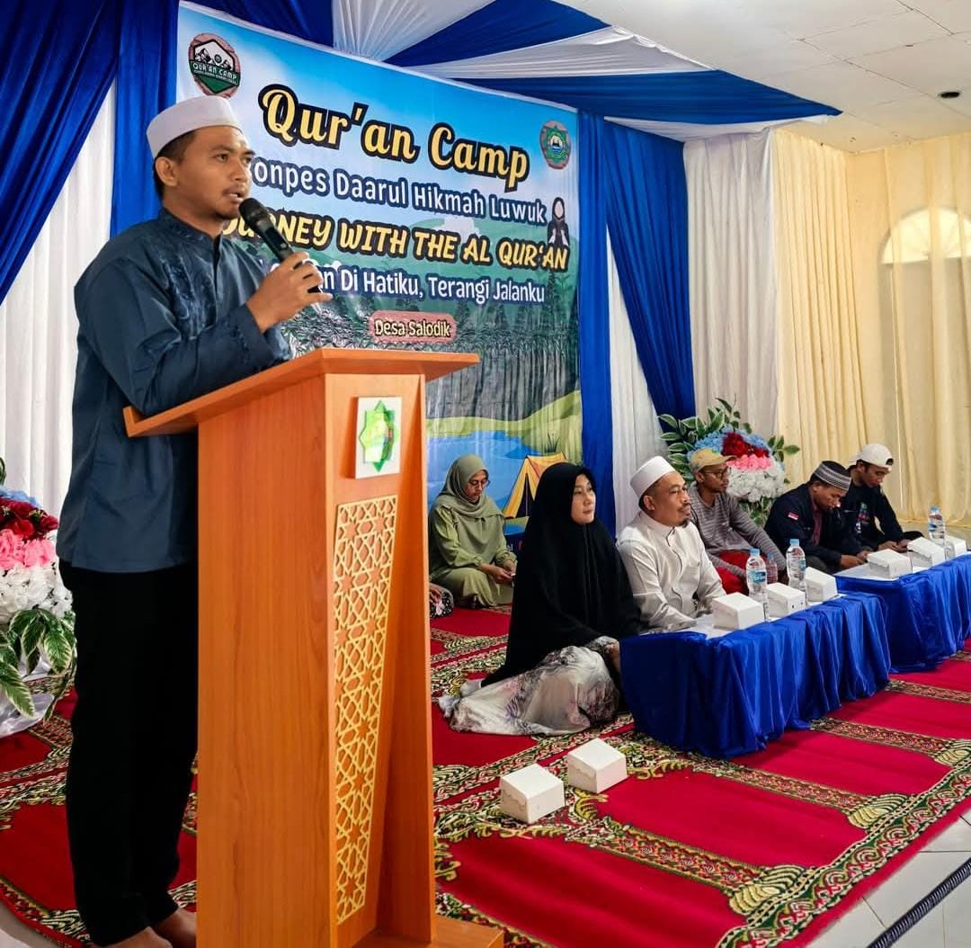 Kegiatan Qur’an Camp yang mengangkat tema “Al-Qur’an di Hatiku Terangi Jalanku” ini resmi dibuka oleh Pimpinan Ponpes Daarul Hikmah Luwuk, Dr. KH. Muhammad Mu’adz Lc., M.Hi., Jumat 21 Februari 2025.