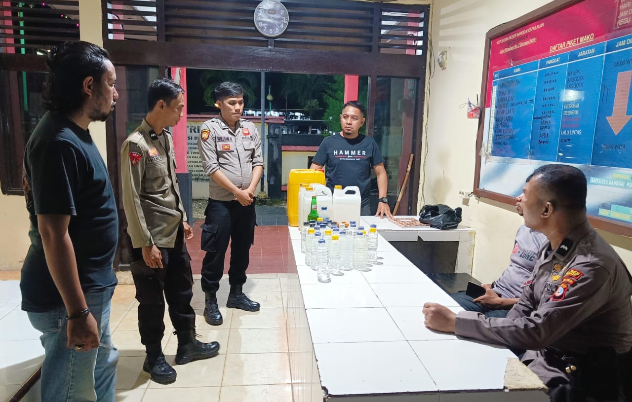 “Kami menyita 25 botol Aqua kecil, 5 botol Hemaviton, 1 botol miras tradisional, 1 jeriken 25 liter, 2 jeriken 5 liter, dan 1 botol Aqua besar berisi miras tradisional jenis cap tikus,” ungkap Ipda Ridwan Sunge.