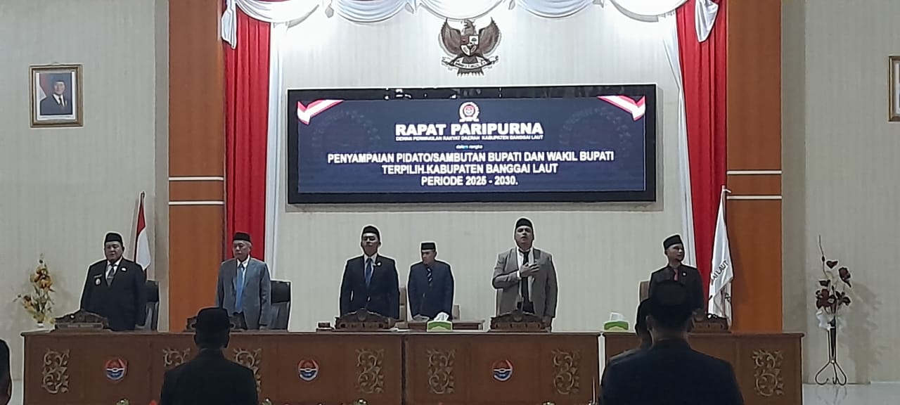 Banggaikece.id – Dewan Perwakilan Rakyat Daerah (DPRD) Kabupaten Banggai Laut (Balut) menggelar Rapat Paripurna penyampaian pidato Bupati dan Wakil Bupati (Wabup) terpilih pada Kamis (6/3/2025). Rapat ini dipimpin langsung oleh Ketua DPRD Balut, Patwan Kuba, di ruang rapat kantor DPRD Balut.