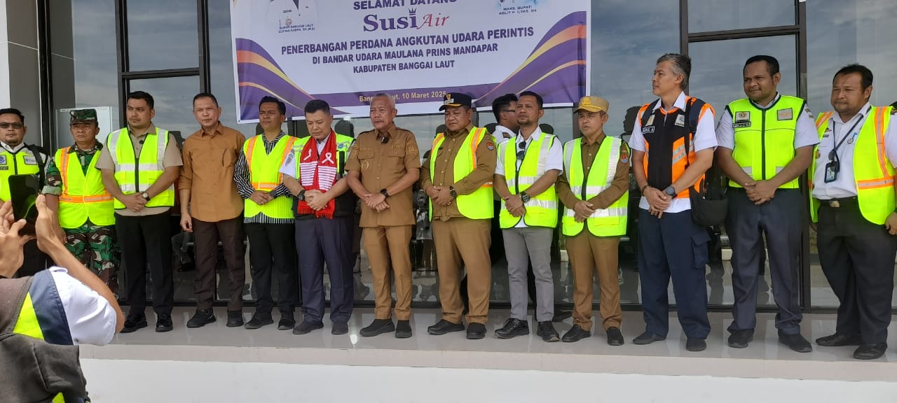 Penerbangan perdana dengan rute Balut – Luwuk – Gorontalo ini berlangsung pada Senin (10/3/2025) dan disambut langsung oleh Bupati Balut, Sofyan Kaepa. Hadir pula Wakil Bupati Balut, Ablit H. Ilyas, Sekda Balut, Ruslan Tolani, Ketua DPRD Balut, Patwan Kuba beserta unsur pimpinan dan beberapa anggota DPRD, serta unsur Forkopimda dan pimpinan OPD Pemda Balut.