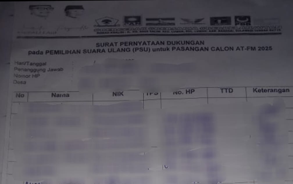 Disebutkan bahwa, pada tanggal 27 Maret 2025, tim Paslon 01 ATFM mengambil dana THR di rumah bendahara Paslon 01 ATFM yang beralamat di Bunta. Saat tiba di kediaman sang bendahara, Tim Paslon ATFM diiberikan 21 data penerima THR.
