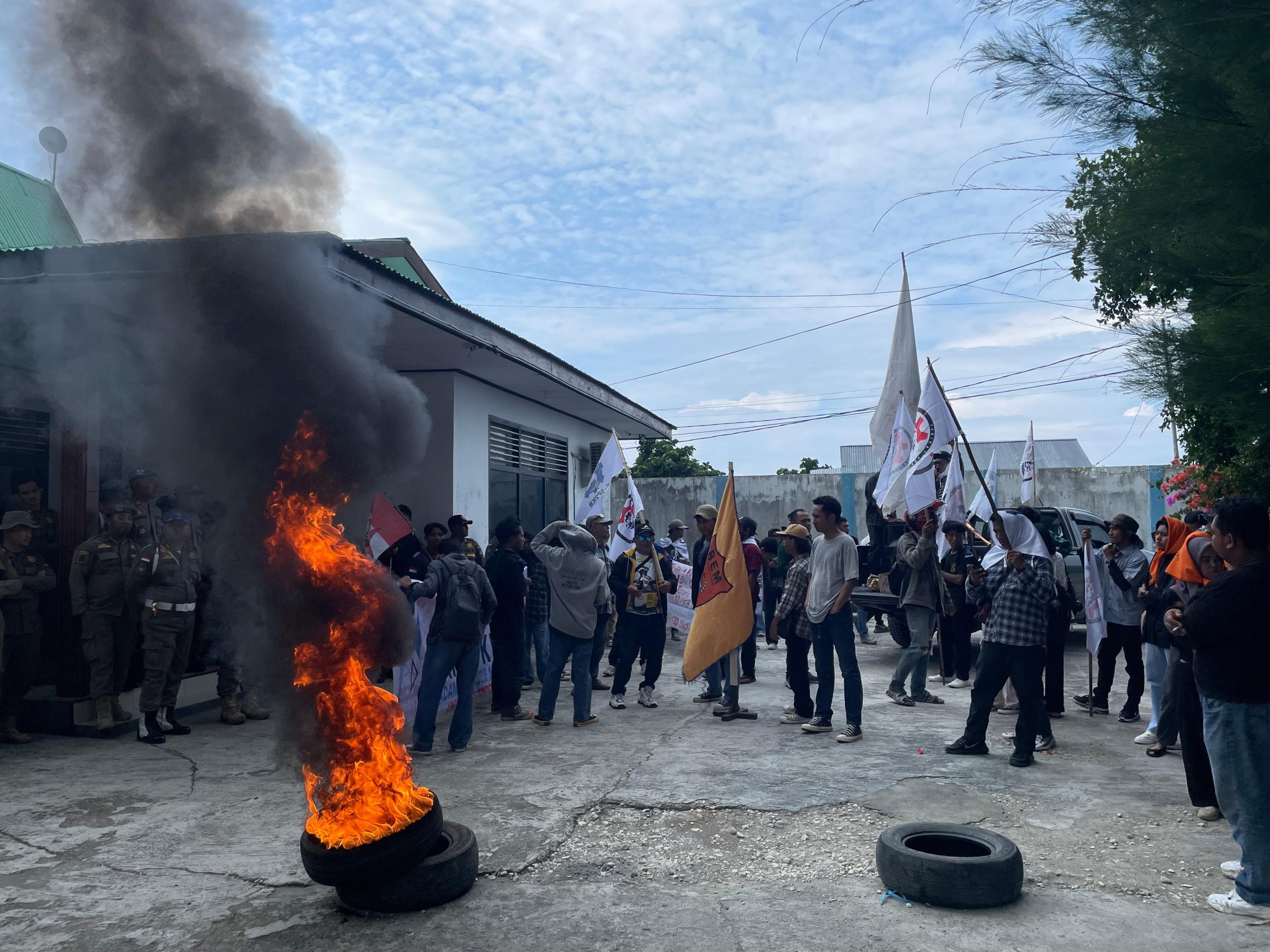 Dalam aksi yang berlangsung pada Senin pagi tersebut, massa membakar ban bekas dan meneriakkan tuntutan agar Disnakertrans segera turun tangan menyelesaikan sengketa ketenagakerjaan ini.