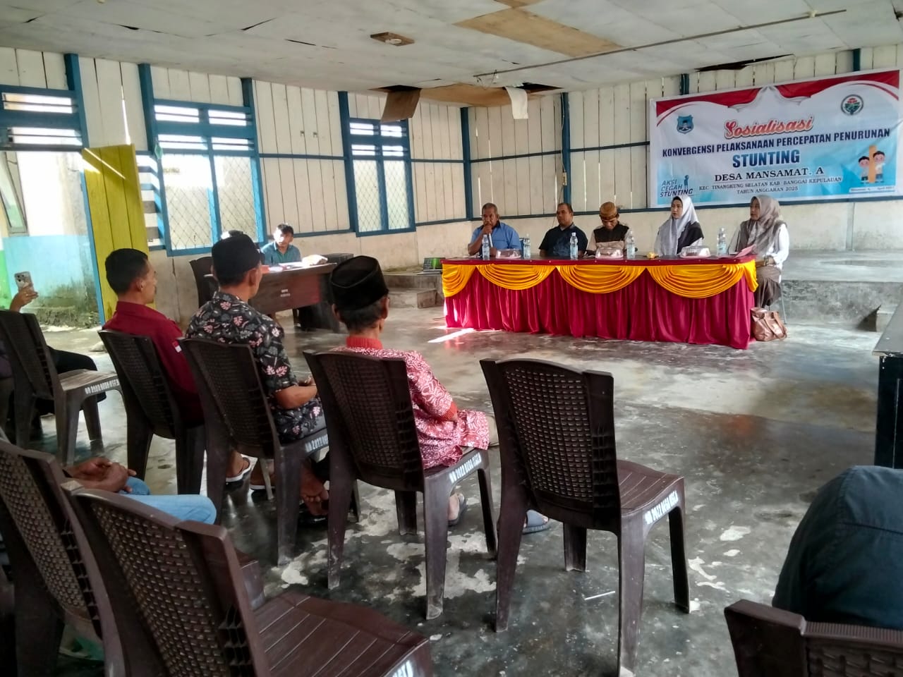 Acara tersebut dihadiri oleh berbagai pihak terkait, di antaranya perwakilan Dinas Pemberdayaan Masyarakat dan Desa, Tim Kabupaten, Camat Tinangkung Selatan, Kepala Desa Mansamat A beserta perangkatnya, Ketua dan Anggota BPD, pendamping desa, kader Posyandu, ahli gizi dari Puskesmas Mansamat A, serta tokoh adat dan tokoh agama setempat.