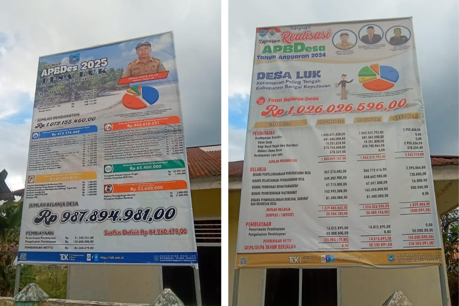 Banggaikece.id – Sebagai bentuk komitmen terhadap keterbukaan informasi publik dan transparansi pengelolaan anggaran, Pemerintah Desa Luk, Kecamatan Peling Tengah, Kabupaten Banggai Kepulauan (Bangkep), melaksanakan pemasangan baliho Anggaran Pendapatan dan Belanja Desa (APBDes) Tahun Anggaran 2025.