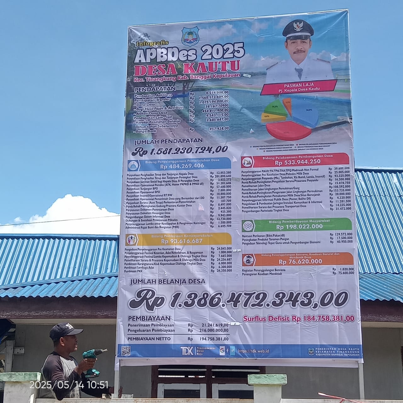 Pada Rabu 21 mei 2025, Pemerintah Desa Kautu secara resmi melaksanakan pemasangan baliho yang berisi informasi rinci tentang Anggaran Pendapatan dan Belanja Desa (APBDes) untuk Tahun Anggaran 2025.