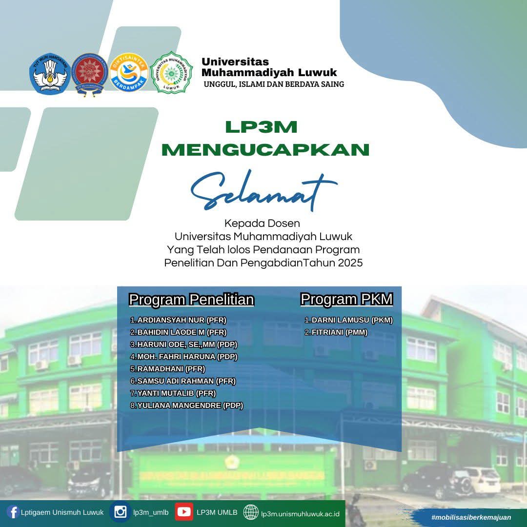 Banggaikece.id- Selamat, sebanyak 10 dosen Universitas Muhammadiyah (Unismuh) Luwuk berhasil lolos pendanaan penelitian dan pengabdian tahun 2025.
