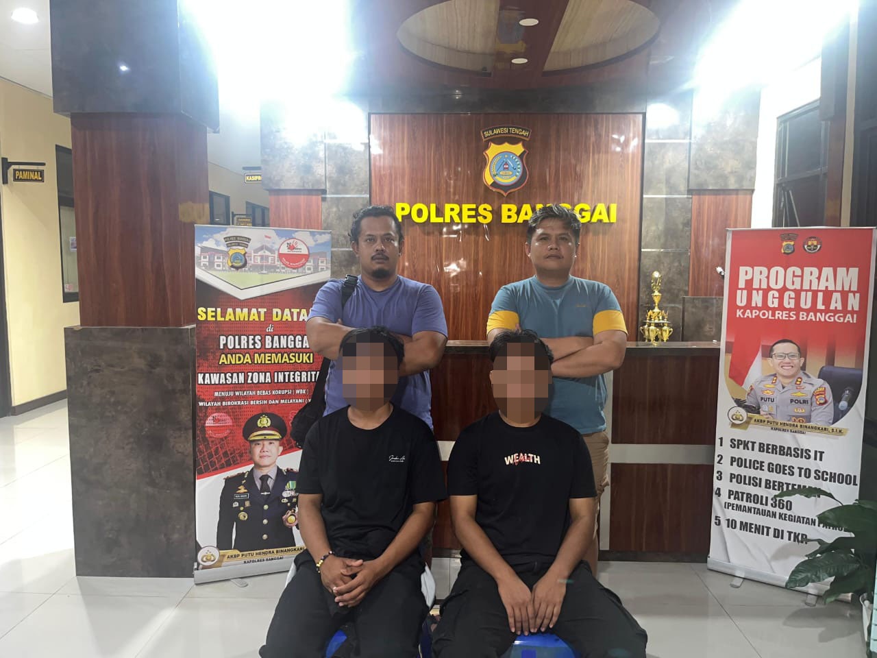 Banggaikece.id- Tim Resmob Polres Banggai mengamankan dua pria berinisial RR alias I (21) dan DR alias A (18) warga Kecamatan Luwuk, Kabupaten Banggai, yang diduga melakukan tindak pidana pencabulan atau persetubuhan anak di bawah umur, Sabtu (24/5/2025).