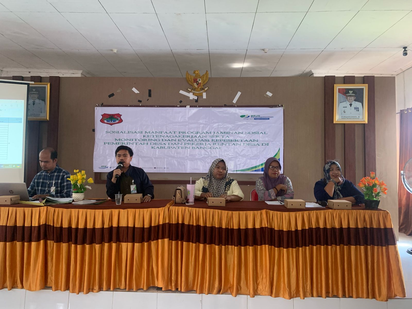 Banggaikece.id- Bersama Dinas Pemberdayaan Masyarakat Desa (DPMD), BPJS Ketenagakerjaan atau BPJamsostek Banggai menggelar sosialisasi program dan manfaat BPJS Ketenagakerjaan serta monitoring evaluasi (Monev) kepesertaan ekosistem desa di daerah ini.