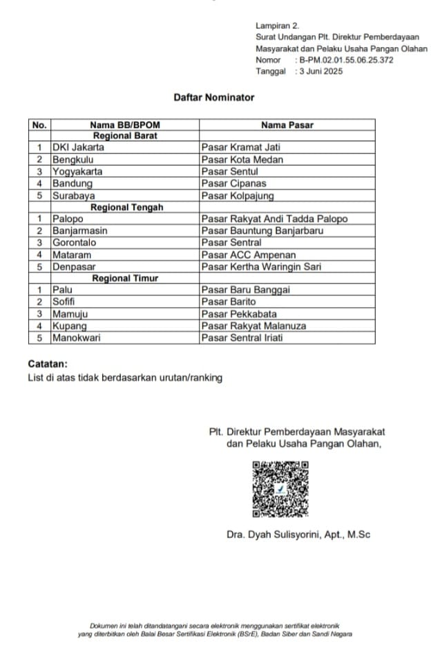 Masuknya Pasar Baru Banggai ke dalam nominasi ini menjadi kebanggaan sekaligus tantangan bagi pemerintah daerah dan masyarakat Balut untuk terus meningkatkan kualitas layanan dan infrastruktur pasar demi terciptanya lingkungan pangan yang aman, sehat, dan layak. (Asw)