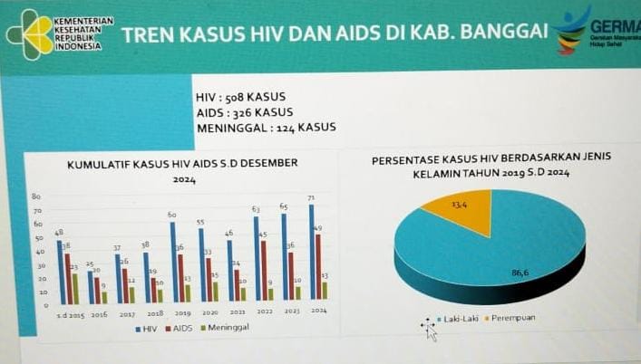 “Hingga saat ini, Kabupaten Banggai mencatat 508 kasus HIV, AIDS 326 kasus dan meninggal mencapai 124 kasus (data dari tahun 2015-2024),” ungkap Sekretaris KPA Kabupaten Banggai, Hj. Rampia Laamiri S.Sos., M.MKes., kepada media ini, Kamis 12 Juni 2025.