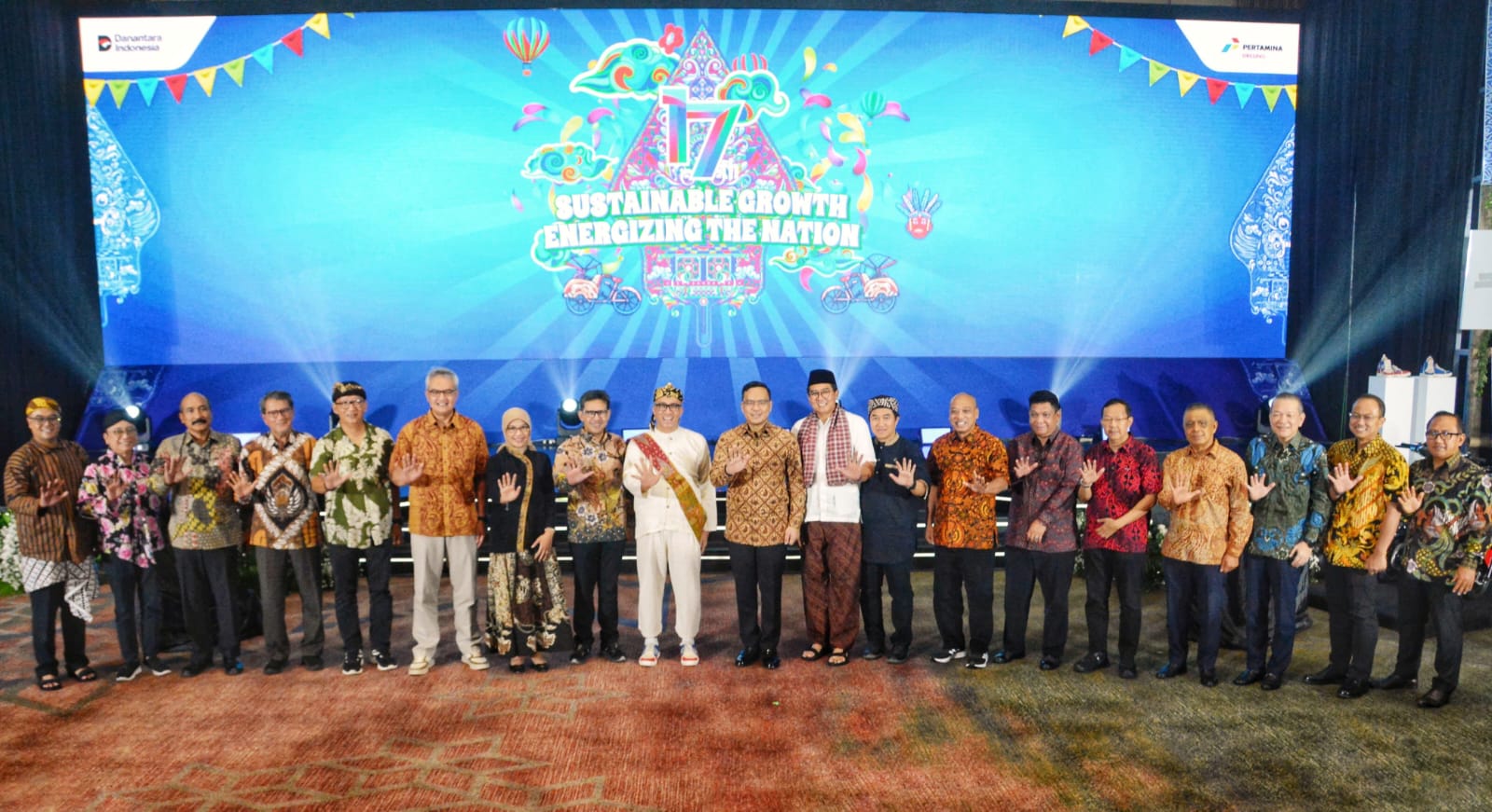 Direktur Utama Pertamina, Simon Aloysius Mantiri bersama Direkai Pertamina Drilling, Direksi PHE dan Direksi Anak Perusahaan PHE berfoto bersama dalam puncak acara HUT ke-17 Pertamina Drilling di Ballroom, Grha Pertamina, Jakarta, Sabtu (14/6). FOTO: IST