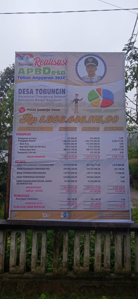 Banggaikece,id – Pemerintah Desa (Pemdes) Tobungin, Kecamatan Tinangkung selatan, terus melakukan keterbukaan informasi publik dengan melakukan pemasangan baliho berisikan rincian realisasi Anggaran Pendapatan dan Belanja Desa (APBDes) tahun 2024 dan APBDes 2025.