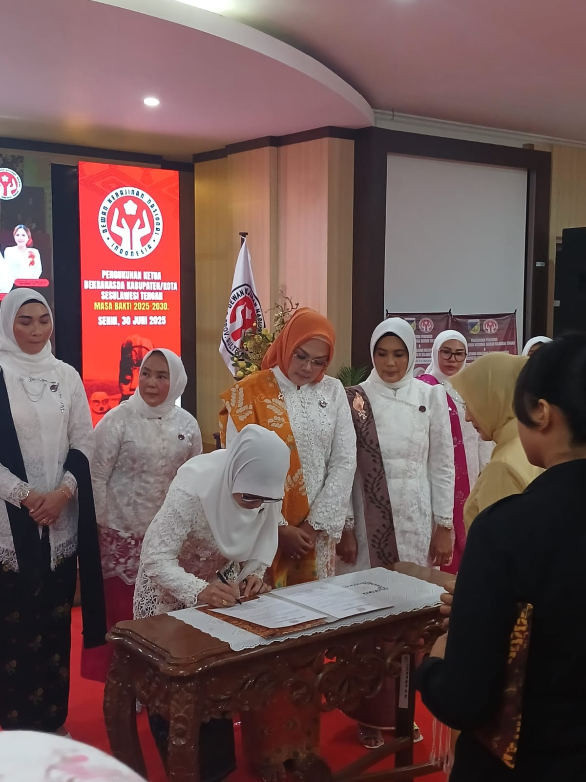 Pengukuhan dilakukan langsung oleh Ketua Dekranasda Provinsi Sulawesi Tengah, Ny. Ir. Sry Nirwanti Bahasuan, dan turut dihadiri Gubernur Sulawesi Tengah, para Bupati dan Ketua Dekranasda Kabupaten/Kota, serta para Kepala OPD lingkup Pemprov Sulteng.