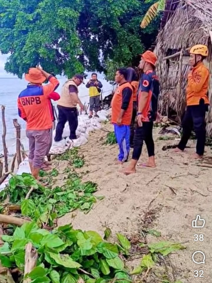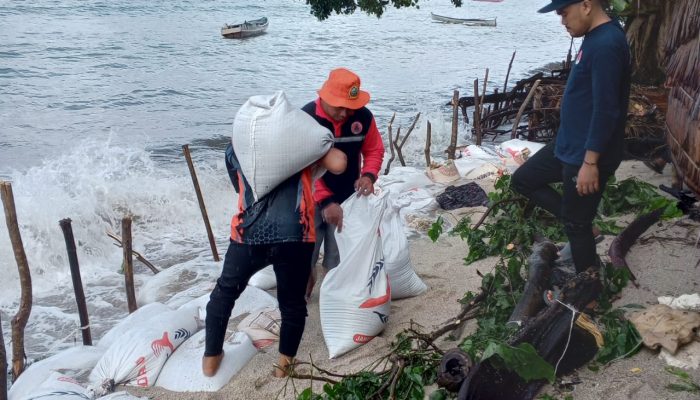 Setelah melakukan asesmen di lapangan, BPBD bersama pihak kecamatan, pemerintah desa, dan warga setempat langsung melaksanakan pembuatan tanggul darurat untuk menahan terjangan gelombang.