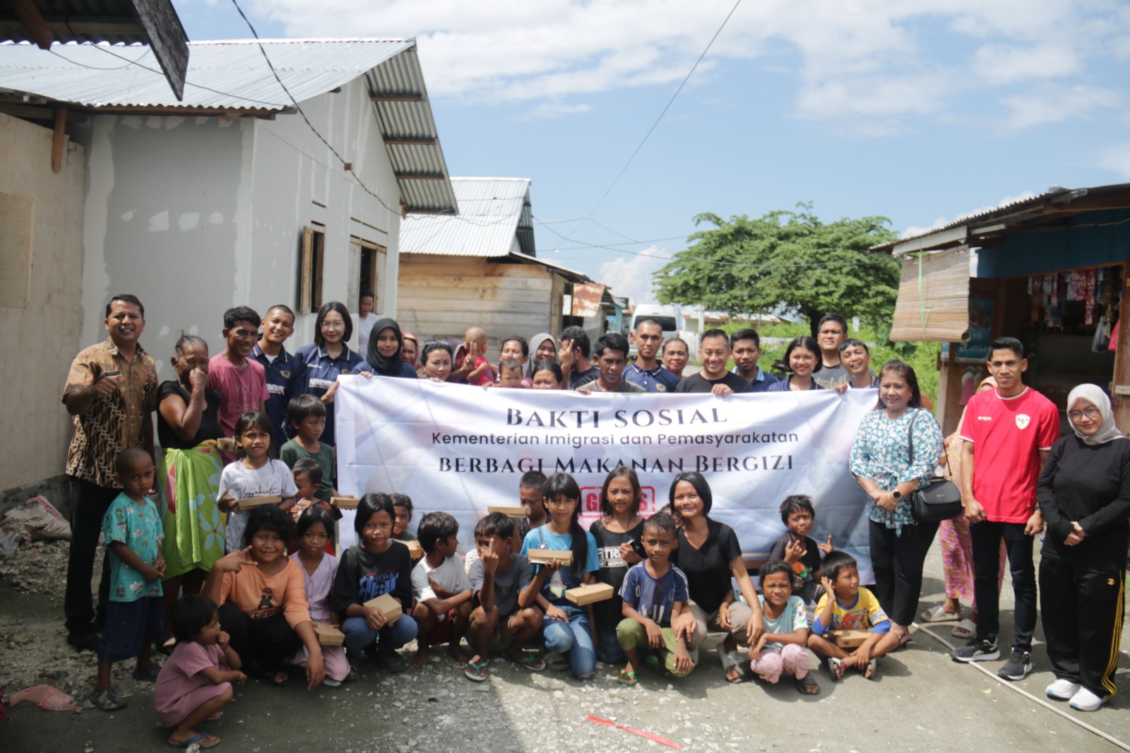 Banggaikece.id— Kantor Imigrasi Kelas II Non TPI Banggai melaksanakan kegiatan sosial berupa pembagian makanan bergizi gratis kepada warga eks penggusuran Tanjungsari di Kelurahan Karaton, Kecamatan Luwuk, Kabupaten Banggai, Jumat (4/7/2025).
