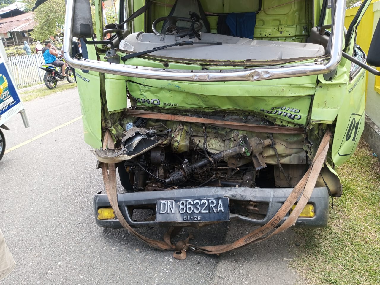 Banggaikece.id- Sebuah truk muatan mengalami kecelakaan dan menabrak mobil kontainer di Jalan Trans Sulawesi Desa Lontio Kecamatan Nambo, Banggai, Rabu (9/7/2025). Beruntung, tidak ada korban jiwa dalam insiden tersebut.