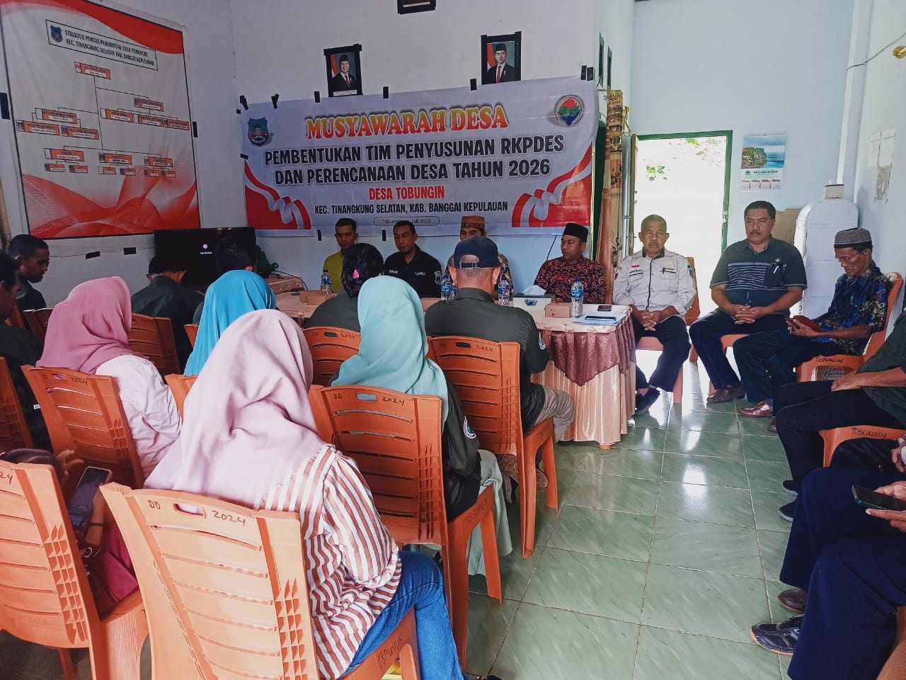 Banggaikece.id – Pemerintah Desa Tobungin, Kecamatan Tinangkung Selatan, Kabupaten Banggai Kepulauan (Bangkep), menggelar Musyawarah Desa (Musdes) dalam rangka pembentukan Tim Penyusun Rencana Kerja Pemerintah Desa (RKPDes) Tahun Anggaran 2026. Kegiatan ini dilaksanakan pada Kamis, 10 Juli 2025, di Balai Pertemuan Rakyat Desa Tobungin.