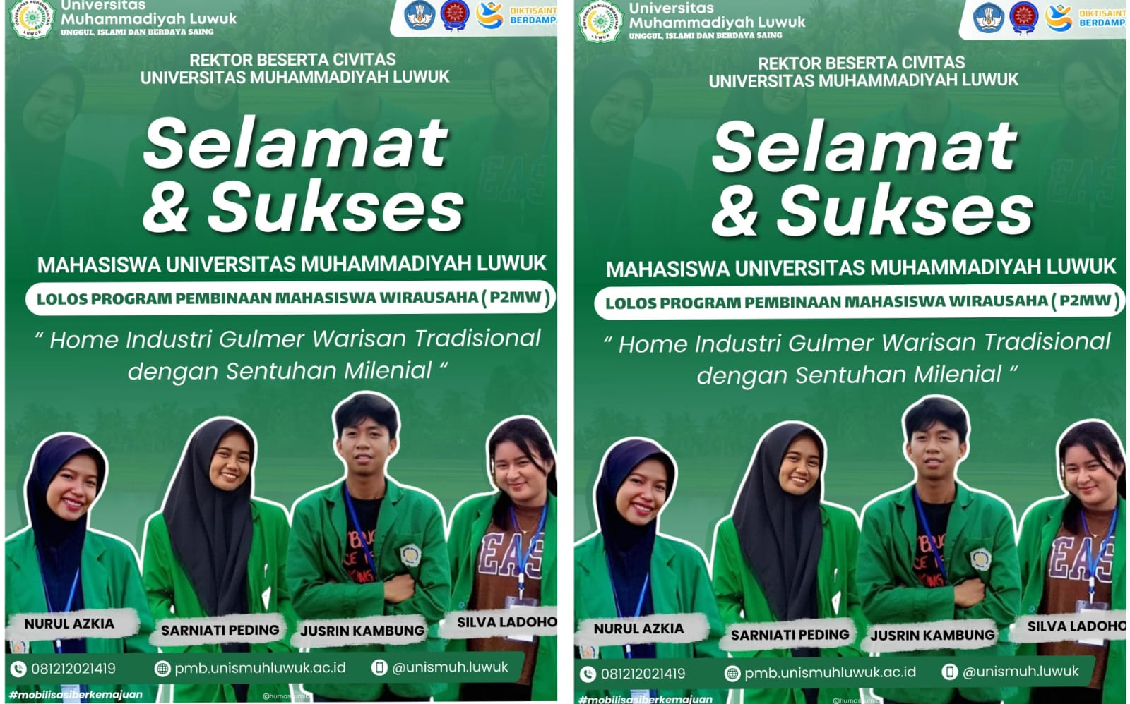 Banggaikece.id- Membanggakan, satu tim mahasiswa Universitas Muhammadiyah (Unismuh) Luwuk sukses lolos pendanaan dalam Program Pembinaan Mahasiswa Wirausaha (P2MW) tahun 2025.