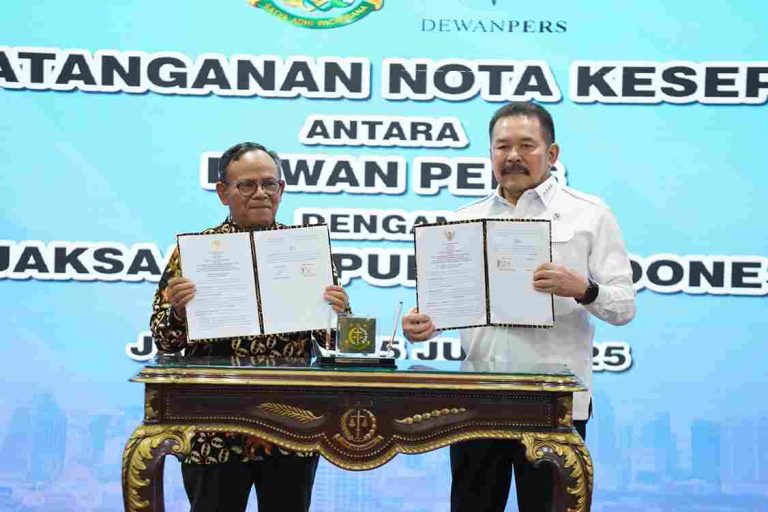 Banggaikece.id – Kejaksaan Republik Indonesia dan Dewan Pers secara resmi menandatangani Nota Kesepahaman (MoU) tentang “Koordinasi dalam Mendukung Penegakan Hukum, Perlindungan Kemerdekaan Pers, Peningkatan Kesadaran Hukum Masyarakat, serta Peningkatan Kapasitas Sumber Daya Manusia”, pada hari ini.