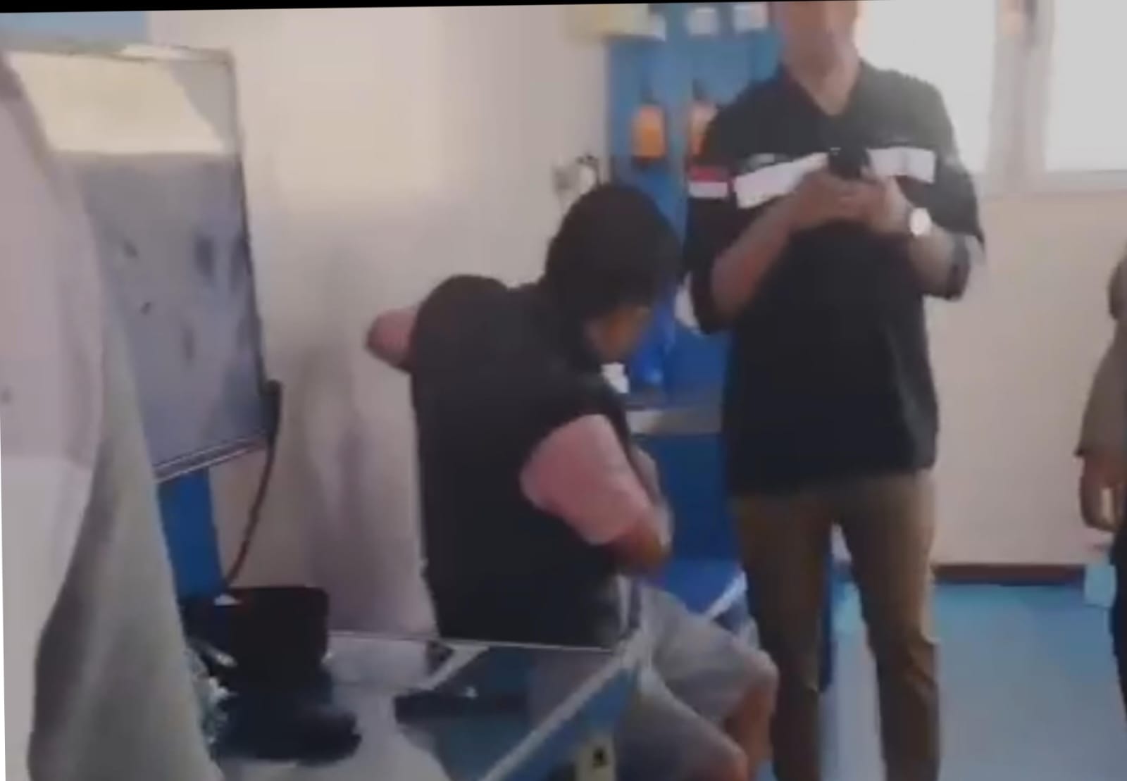 Dalam video berdurasi 48 detik ini, terlihat oknum dosen yang mengenakan rompi bewarna hitam dan celana pendek tengah diamankan dan diintrogasi.