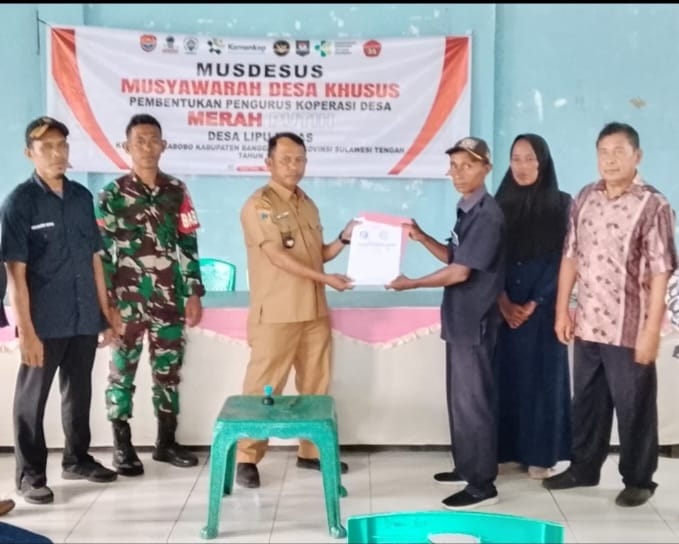 Banggaikece.id – Koperasi Desa (Kopdes) Merah Putih Lipu Talas, Kecamatan Labobo, Kabupaten Banggai Laut, kini resmi terdaftar dan telah mengantongi dokumen Anggaran Dasar dan Anggaran Rumah Tangga (AD/ART). Kopdes ini terbentuk melalui Musyawarah Desa Khusus (Musdesus) yang digelar secara demokratis.