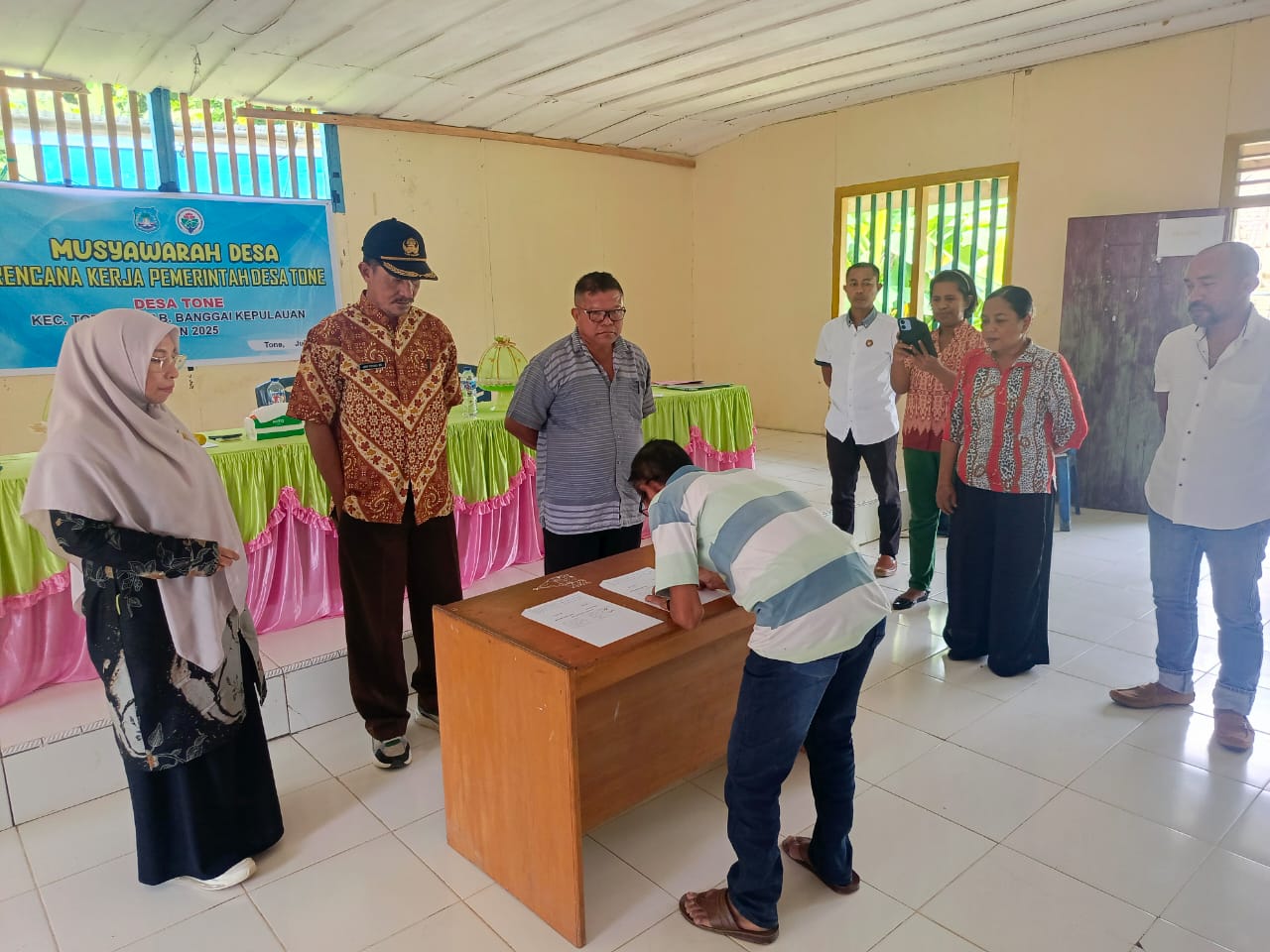 Musdes dihadiri oleh berbagai unsur penting, antara lain Kepala Desa dan Sekretaris Desa Tone, perwakilan Dinas PMD, Ketua dan anggota BPD, perangkat desa, pendamping lokal kecamatan, serta lembaga desa lainnya. Kehadiran berbagai pihak tersebut mencerminkan komitmen bersama dalam merancang RKPDes yang relevan dan responsif terhadap kebutuhan masyarakat.