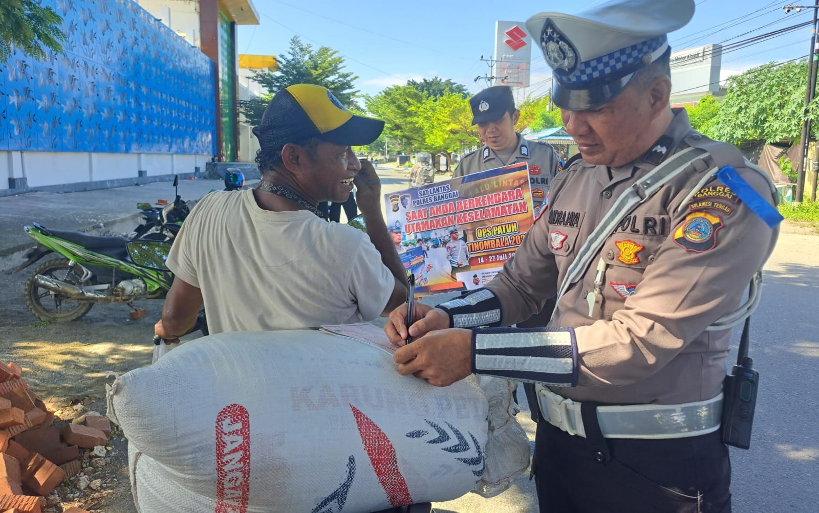 Dalam Operasi ini pula, jajaran Polres Banggai terus menggencarkan sosialisasi melalui pembagian brosur dan stiker kepada pengguna jalan.