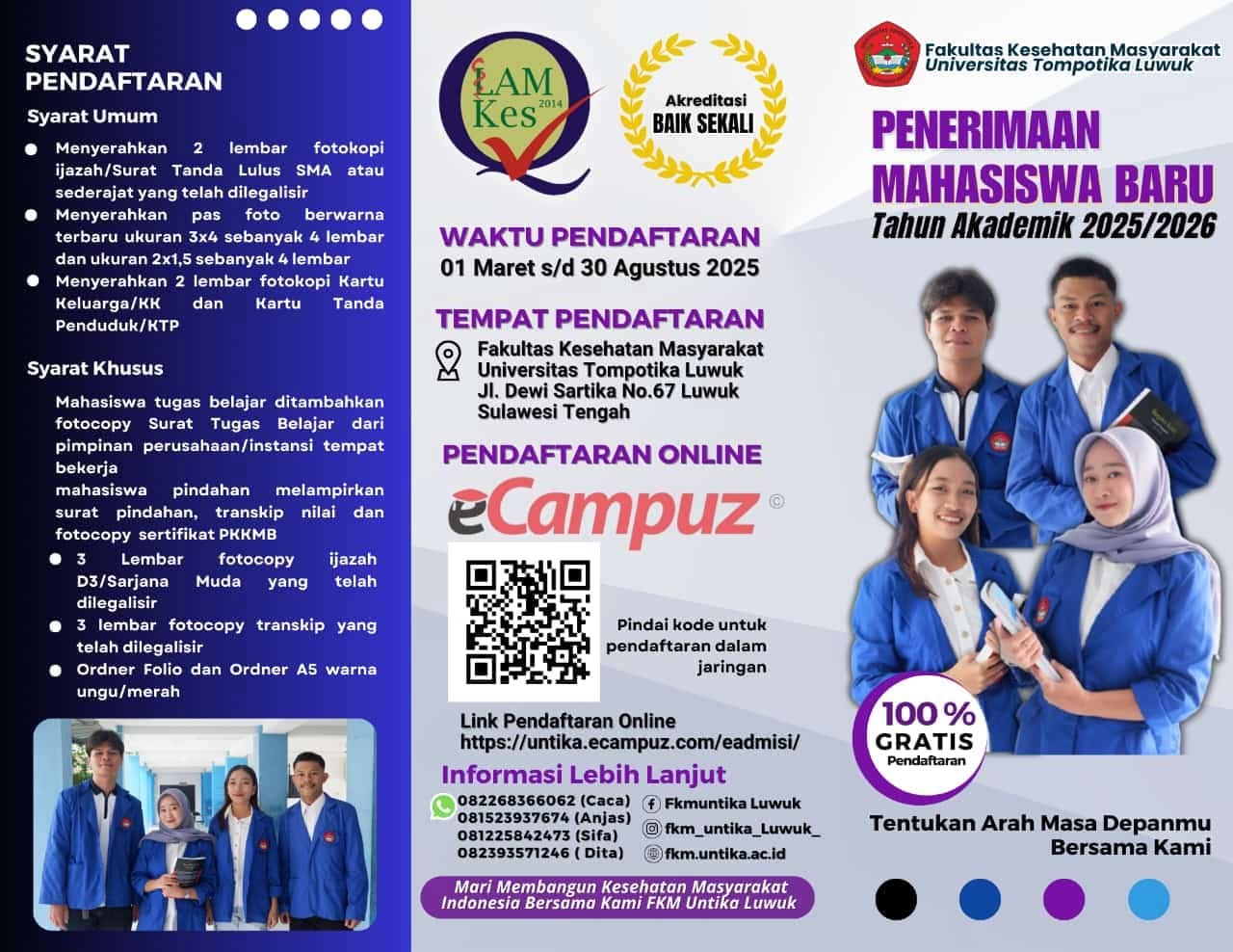 Banggaikece.id – Fakultas Kesehatan Masyarakat (FKM) Universitas Tompotika (Untika) Luwuk terus menunjukkan eksistensinya sebagai salah satu fakultas favorit di kampus biru. Hal ini dibuktikan dengan tingginya jumlah pendaftar penerimaan mahasiswa baru yang mencapai ratusan orang pada tahun akademik 2025.