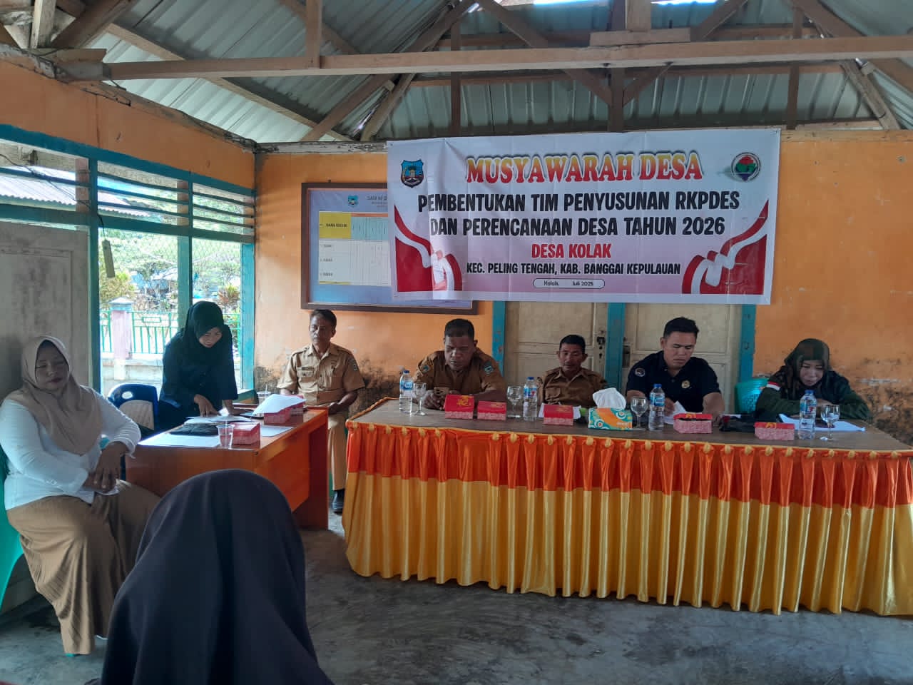 Hadir dalam kegiatan tersebut Camat Peling Tengah Haryadi, ST, Kepala Desa Kolak Nusran Banggiok, Ketua dan Anggota BPD, pendamping desa, tokoh masyarakat, tokoh pendidik, serta unsur kelembagaan desa lainnya.