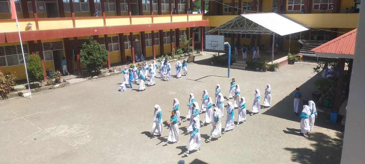 “Hampir semua siswa terlibat, tapi kami memilih berdasarkan postur tubuh agar tampak rapi. Kami libatkan siswa dari kelas VII, VIII, dan IX,” ungkapnya.