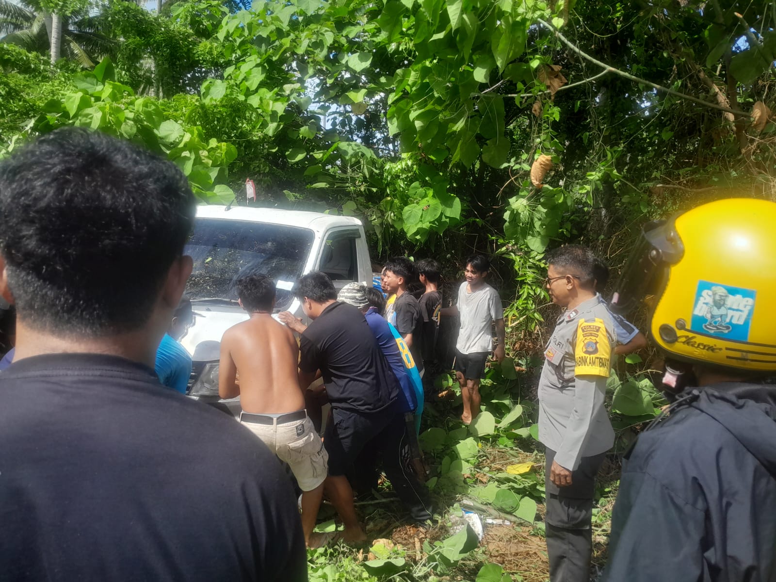 Sesampai di TKP di sekitar pertigaan masuk Desa Pohi pengemudi tidak mampu mengendalikan kendaraannya sehingga terperosok masuk ke kebun warga.