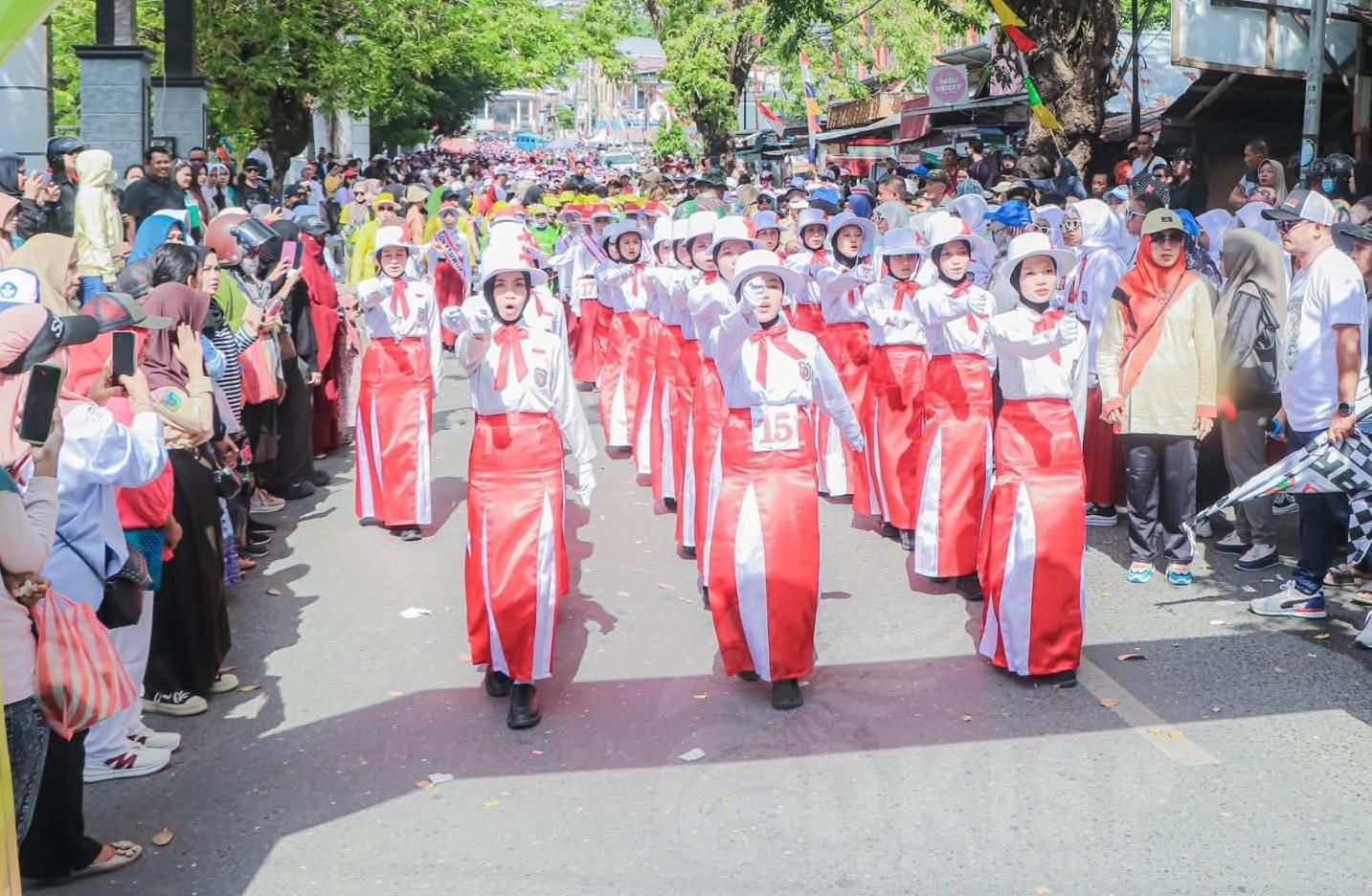 Wakil Bupati Banggai, Drs. H. Furqanuddin Masulili, secara resmi melepas peserta secara bergelombang. Sorak-sorai penonton mengiringi setiap regu yang melangkah dari garis start, menampilkan formasi rapi, gerakan kompak, serta seragam penuh warna yang dipadu dengan atribut unik dan yel-yel membangkitkan semangat.