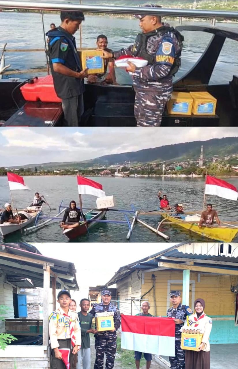 Dalam kegiatan tersebut, TNI AL yang berkolaborasi dengan Saka Bahari dan Mitra Maritim Banggai, selain membagikan puluhan paket sembako, Dan Posal Luwuk juga mendistribusikan puluhan bendera merah putih kepada nelayan yang akan melaut serta masyarakat pesisir dalam rangka memperingati HUT RI ke-80.