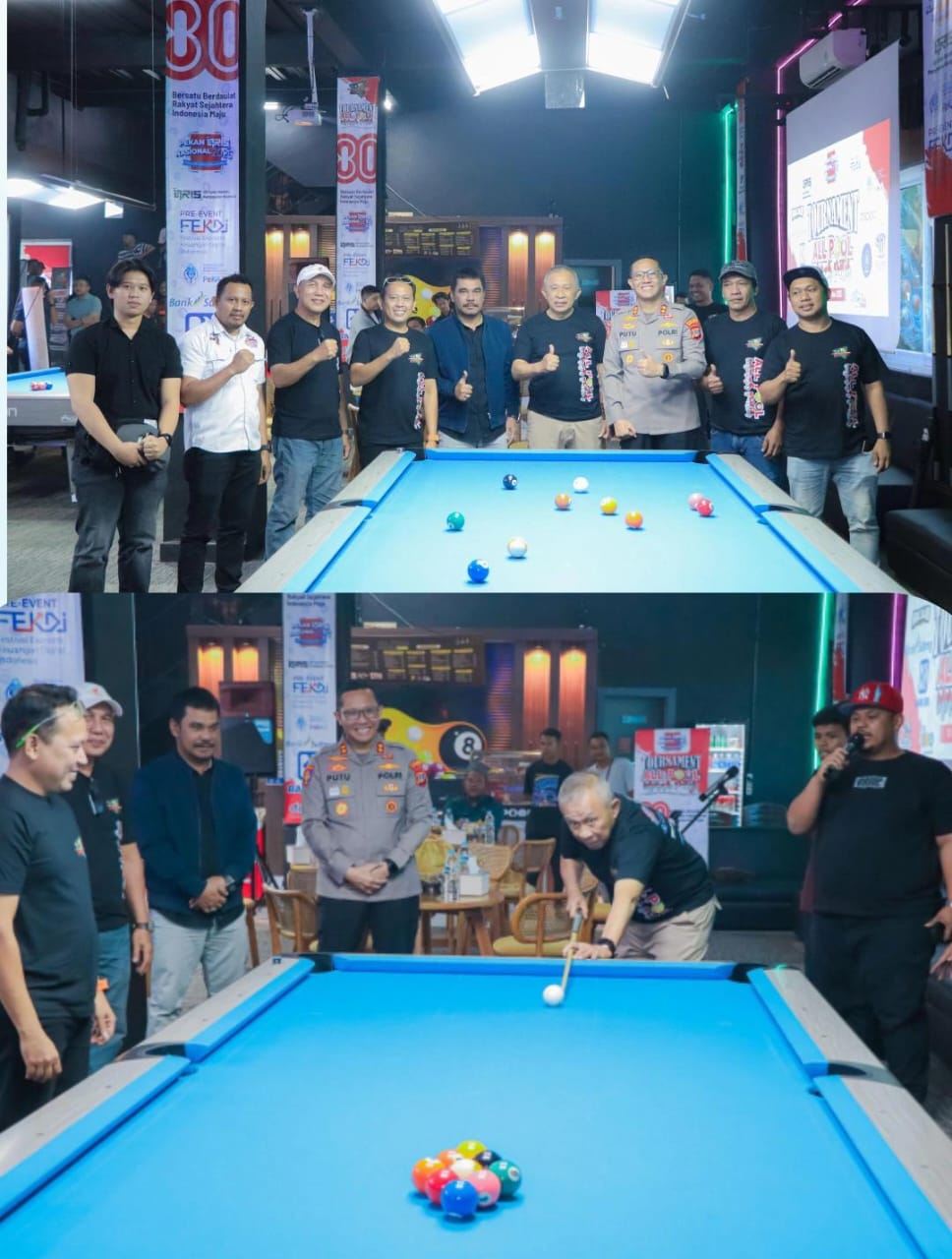 Banggaikece.id — Turnamen Biliar All Pool Merah Putih dalam rangka memeriahkan HUT ke-80 RI resmi dibuka Wakil Bupati Banggai, Drs. H. Furqanuddin Masulili, M.M., Selasa (12/8/2025) di All Pool Biliar & Café, Jalan Dr. Sutomo (Dahlia) No. 03, Luwuk Banggai.
