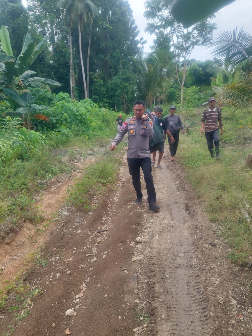 Mendapat laporan tersebut, IPDA Andi bersama personel Polsek Bunta dibantu warga mengevakuasi jenazah ke perkampungan.