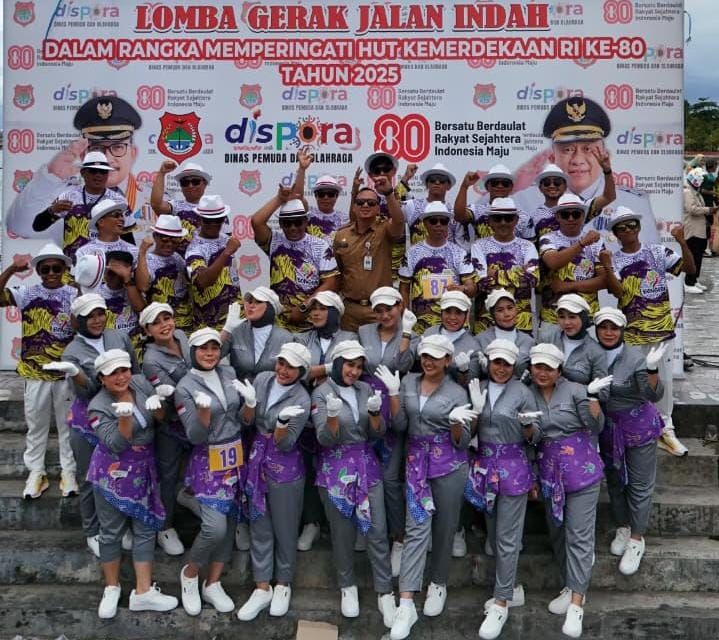 Banggaikece.id – Regu Gerak Jalan Putri Dinas Pariwisata (Dispar) Kabupaten Banggai berhasil meraih juara tiga dalam lomba gerak jalan antar Organisasi Perangkat Daerah (OPD) yang digelar dalam rangka memeriahkan Hari Ulang Tahun ke-80 Republik Indonesia.