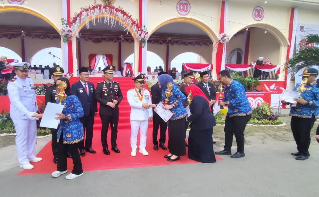 Piala dan piagam penghargaan diserahkan langsung oleh Bupati Banggai, Ir. H. Amirudin, usai upacara bendera di Luwuk, Minggu (17/8/2025). Penghargaan tersebut diterima oleh perwakilan regu Dispar Banggai, Nofa.