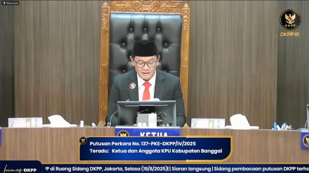 Lima ketua dan anggota KPU tersebut dijatuhi sanksi peringatan oleh Dewan Kehormatan Penyelenggara Pemilu (DKPP RI) dalam sidang pembacaan putusan, Selasa 19 Agustus 2025.