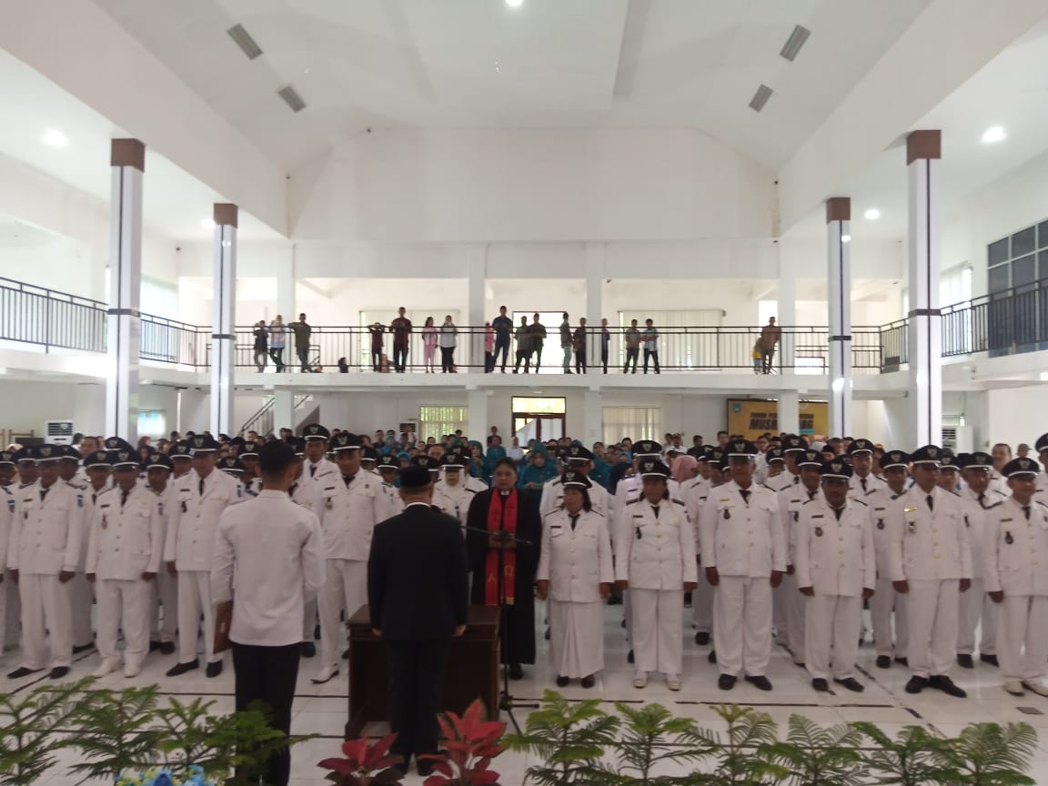 Banggaikece.id – Bupati Banggai Kepulauan (Bangkep), H. Rusli Moidady, ST., MT., AIFO, memimpin langsung acara Pengukuhan dan Perpanjangan Masa Jabatan 60 Kepala Desa Periode 2025–2027. Kegiatan ini berlangsung di Aula Bappeda Bangkep pada Rabu (20/8/2025) pukul 19.30 WITA hingga selesai.