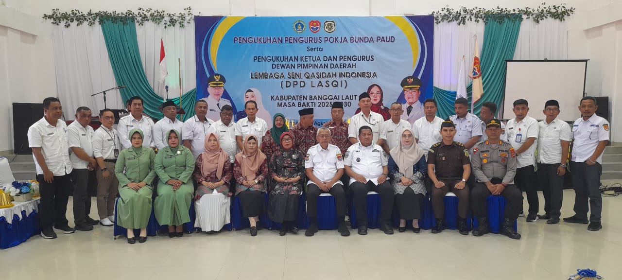 Banggaikece.id – Bupati Banggai Laut (Balut) Sofyan Kaepa resmi mengukuhkan pengurus Pokja Bunda Paud serta Ketua dan pengurus Dewan Pimpinan Daerah Lembaga Seni Qasidah Indonesia (Lasqi) Balut masa bakti 2025–2030. Kegiatan tersebut digelar di Gedung Serba Guna H. M. Ali Hamid, SH, Taman Kota Banggai Balut pada Rabu (20/8/2025).