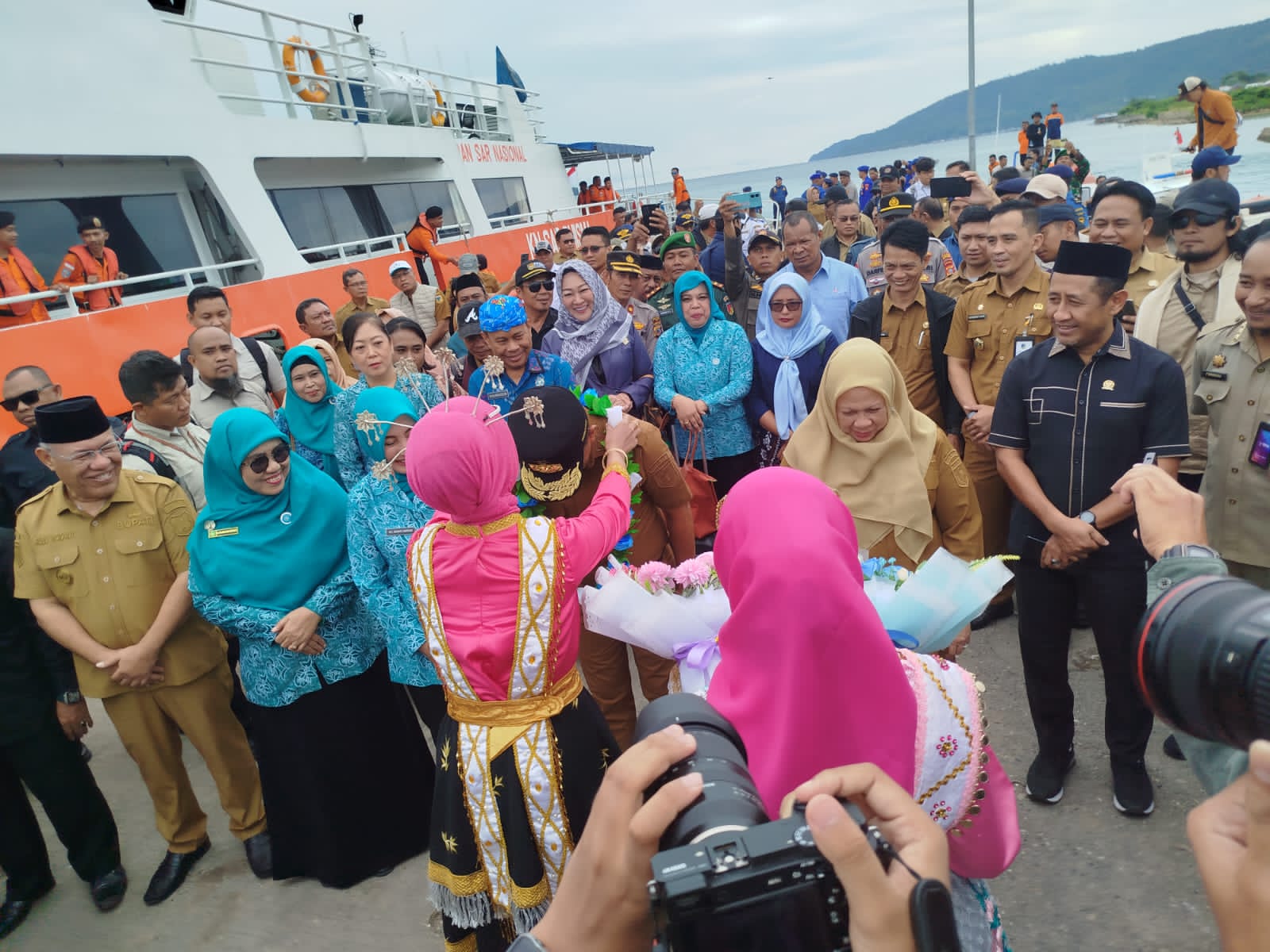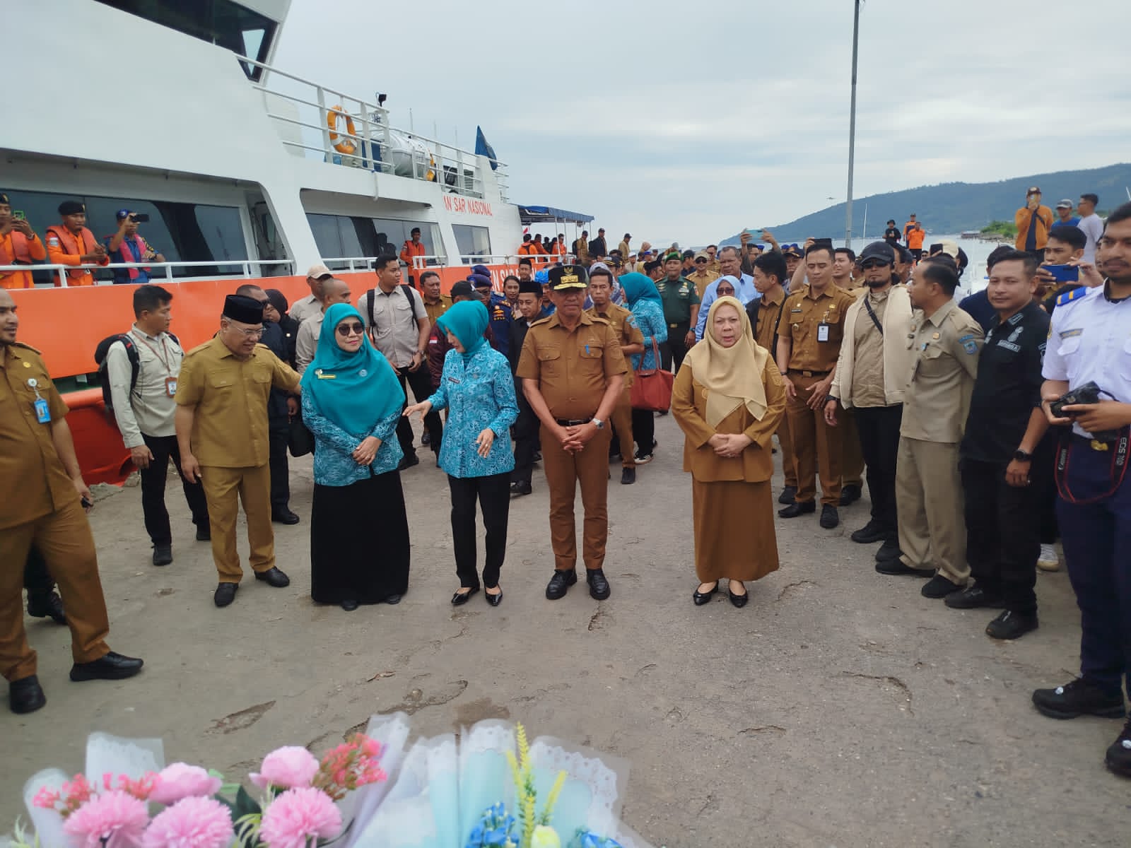 Rombongan Gubernur dan Wakil Gubernur disambut hangat oleh Bupati Banggai Kepulauan, H. Rusli Moidady, ST., MT., AIFO bersama jajaran Pemda dan masyarakat di Pelabuhan Salakan.