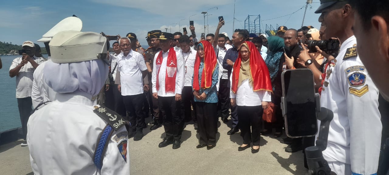 Banggaikece.id – Suasana Pelabuhan Banggai, Kabupaten Banggai Laut (Balut), Rabu (27/8/2025), tampak berbeda dari biasanya. Ratusan masyarakat bersama Bupati Balut, Sofyan Kaepa, berkumpul untuk menyambut kedatangan Gubernur Sulawesi Tengah (Sulteng), H. Anwar Hafid, beserta rombongan.