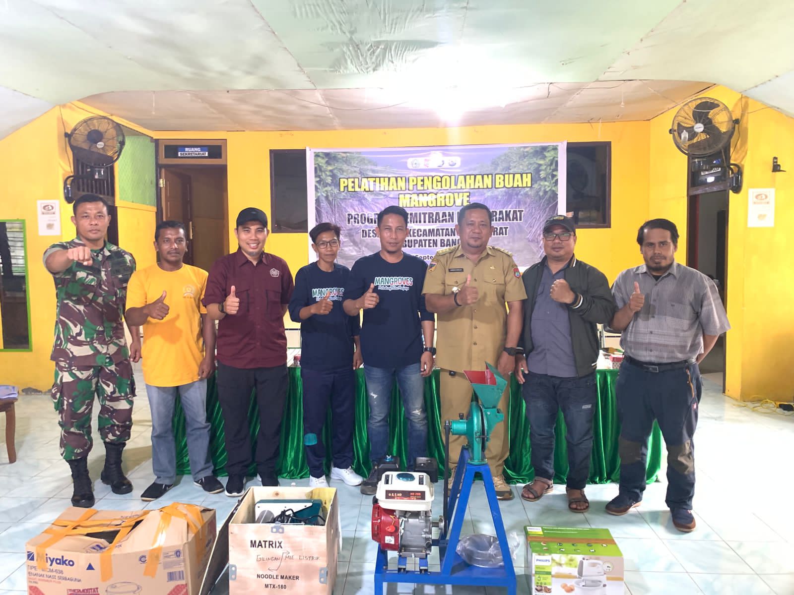 Kegiatan tersebut dihadiri Camat Toili Barat Bambang I.P. Abdullah, S.Pd., MM, Kepala Desa Rata beserta aparat desa, Ketua BPD, Babinsa, Ketua PKK, tokoh masyarakat, serta kelompok Sikarimanang yang menjadi peserta sekaligus penerima bantuan peralatan pengolahan berbahan baku buah mangrove.