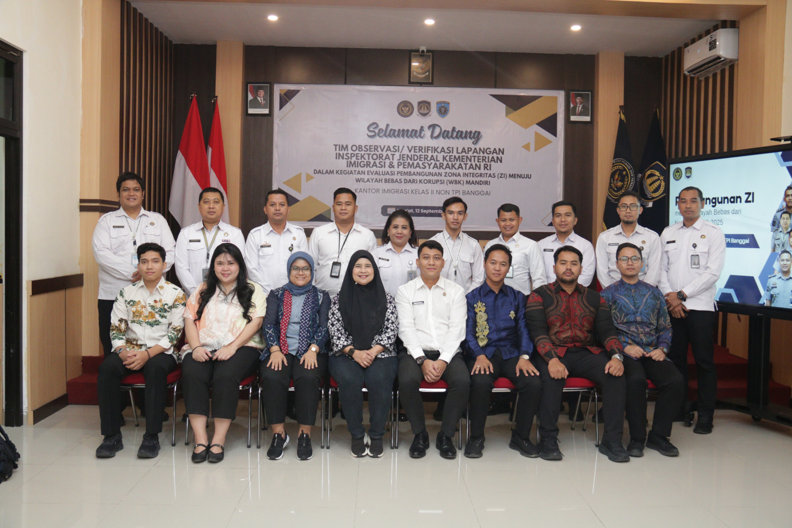 Banggaikece.id- l Tim Inspektorat Jenderal Kementerian Imigrasi dan Pemasyarakatan (Kemenimipas) melaksanakan verifikasi lapangan di Kantor Imigrasi Kelas II Non TPI Banggai, sebagai bagian dari tahapan penilaian Zona Integritas menuju Wilayah Bebas dari Korupsi (WBK), Jumat (12/9/2025).
