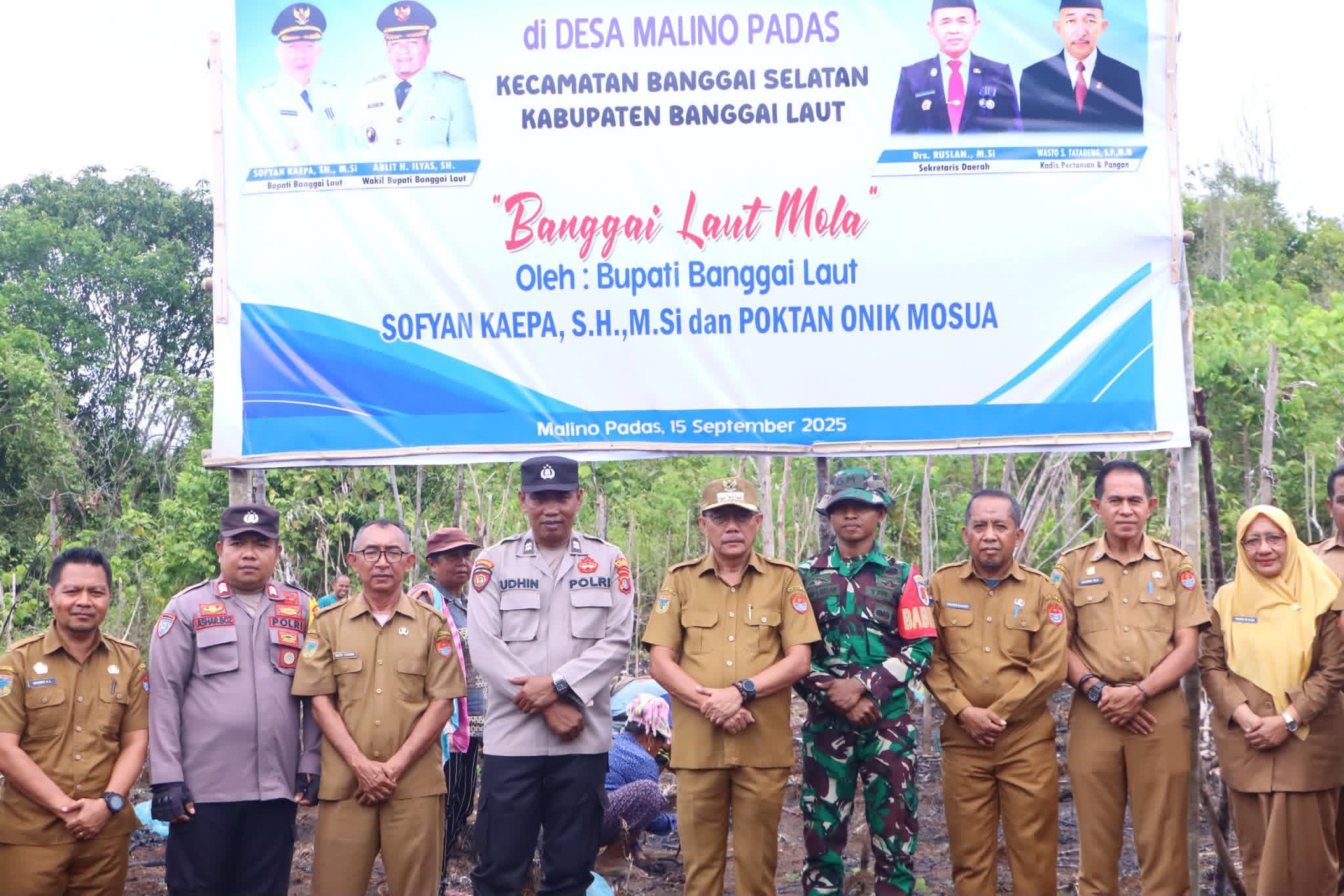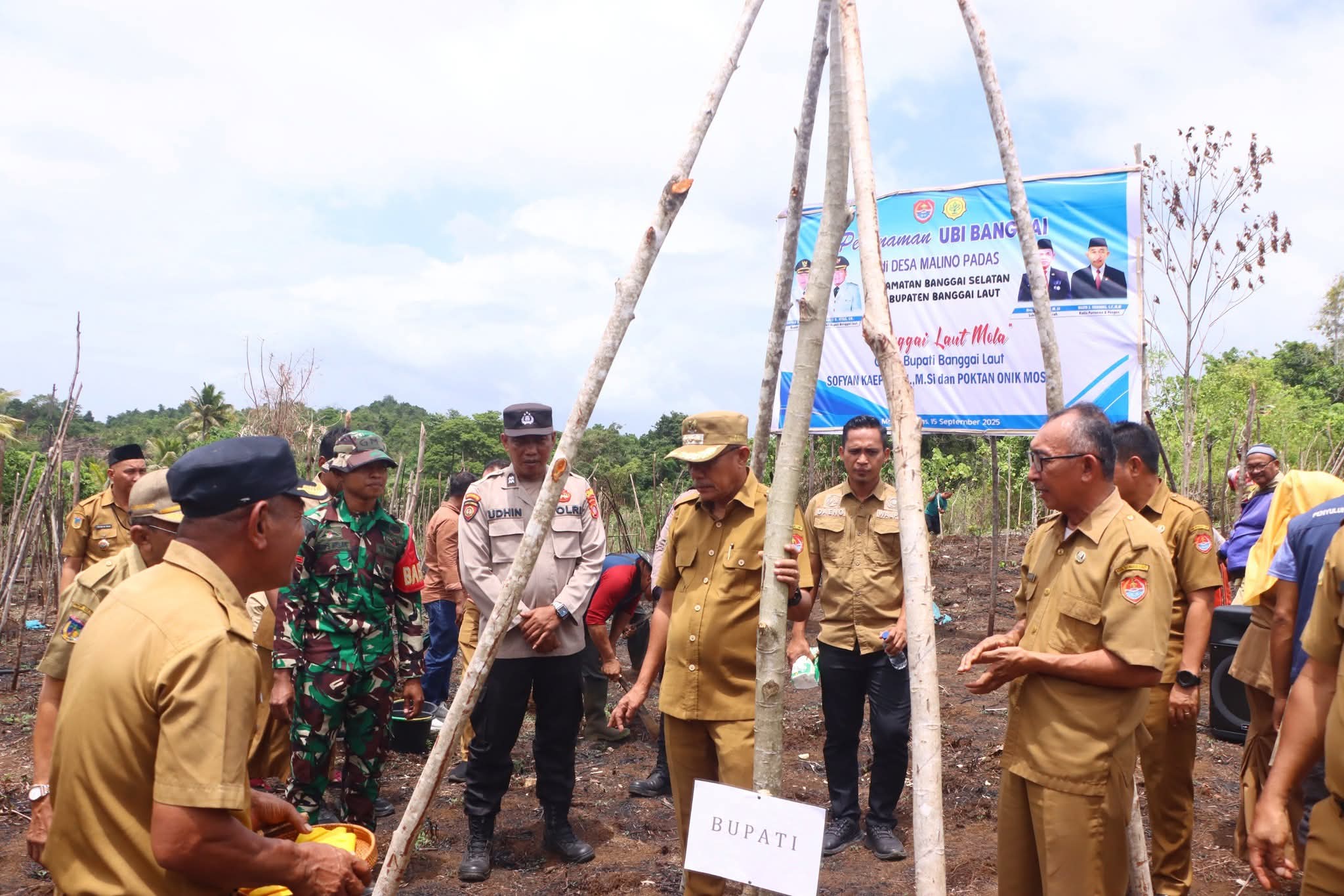 Banggaikece.id — Bupati Banggai Laut, Yang Mulia Bapak Sofyan Kaepa, S.H., M.Si, bersama Ketua KTNA Sukri Kaepa, S.H., melaksanakan kegiatan penanaman ubi Banggai di Desa Malino-Padas, Kecamatan Banggai Selatan, pada Senin (15/9/2025).